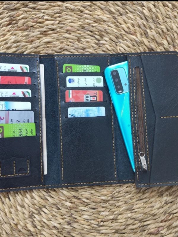 کیف پول و تلفن همراه چرم سوگو سه لت قفل دار کد 423 دوخت ظریف دست دو...